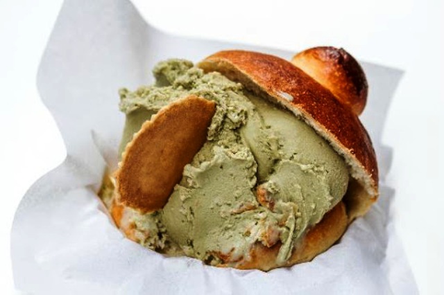 That is just the brioche you eat with Sicilian granita, also, but in this case, it is stuffed with this delicious icy cream. The latter is a special type of ice cream you find in all the Sicilian ice-cream shops. It is also called “scursunera”, which means jasmine, a flavor recalling the best Sicily’s tradition.